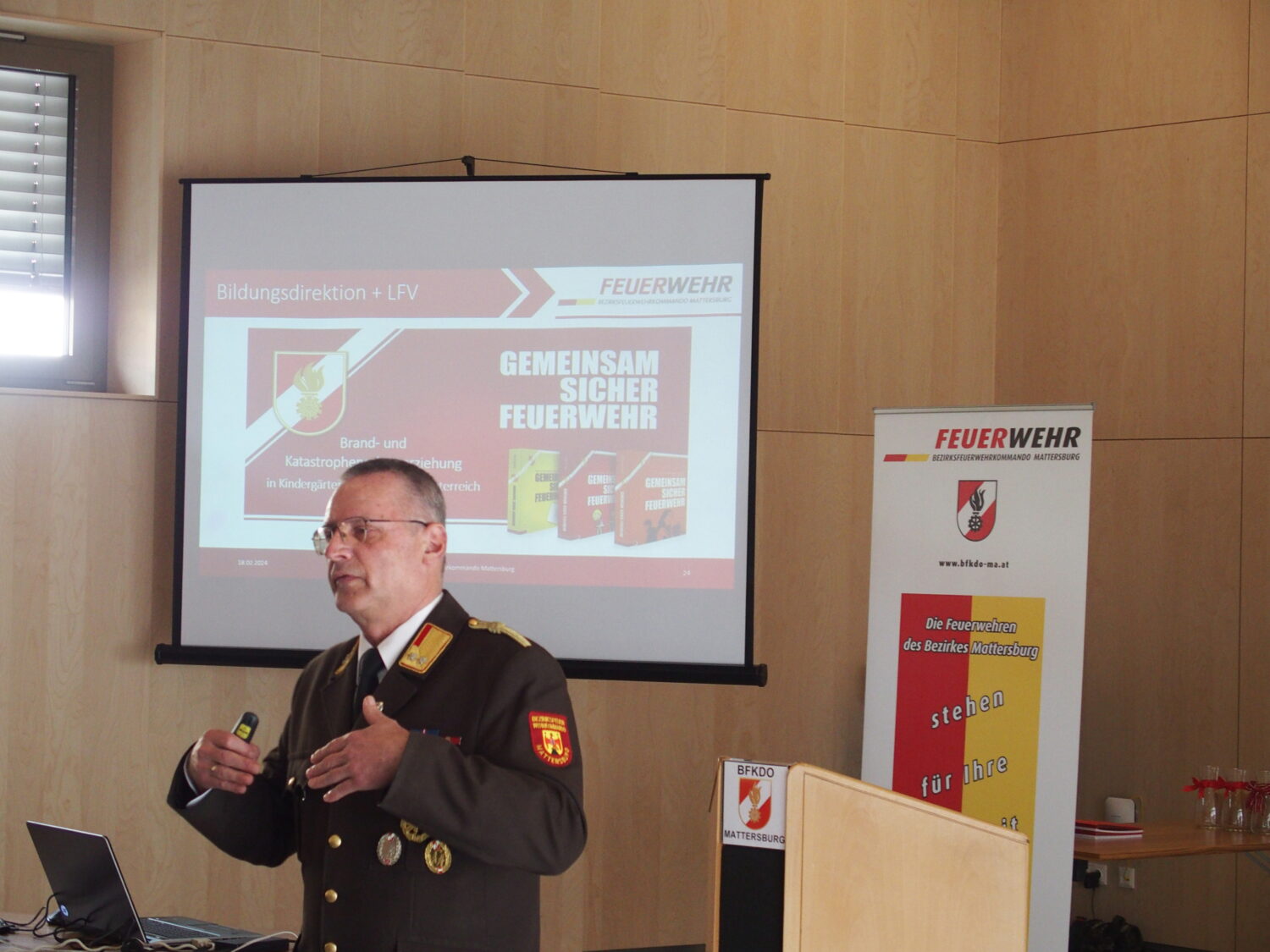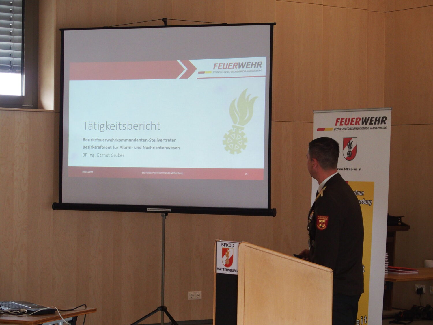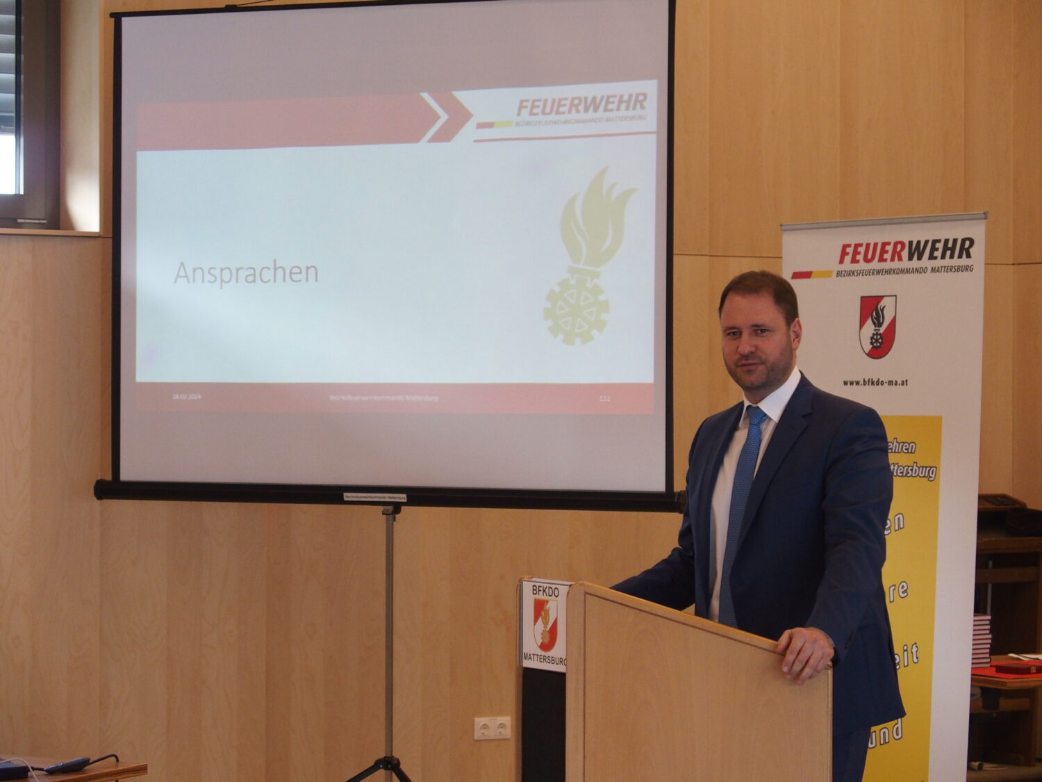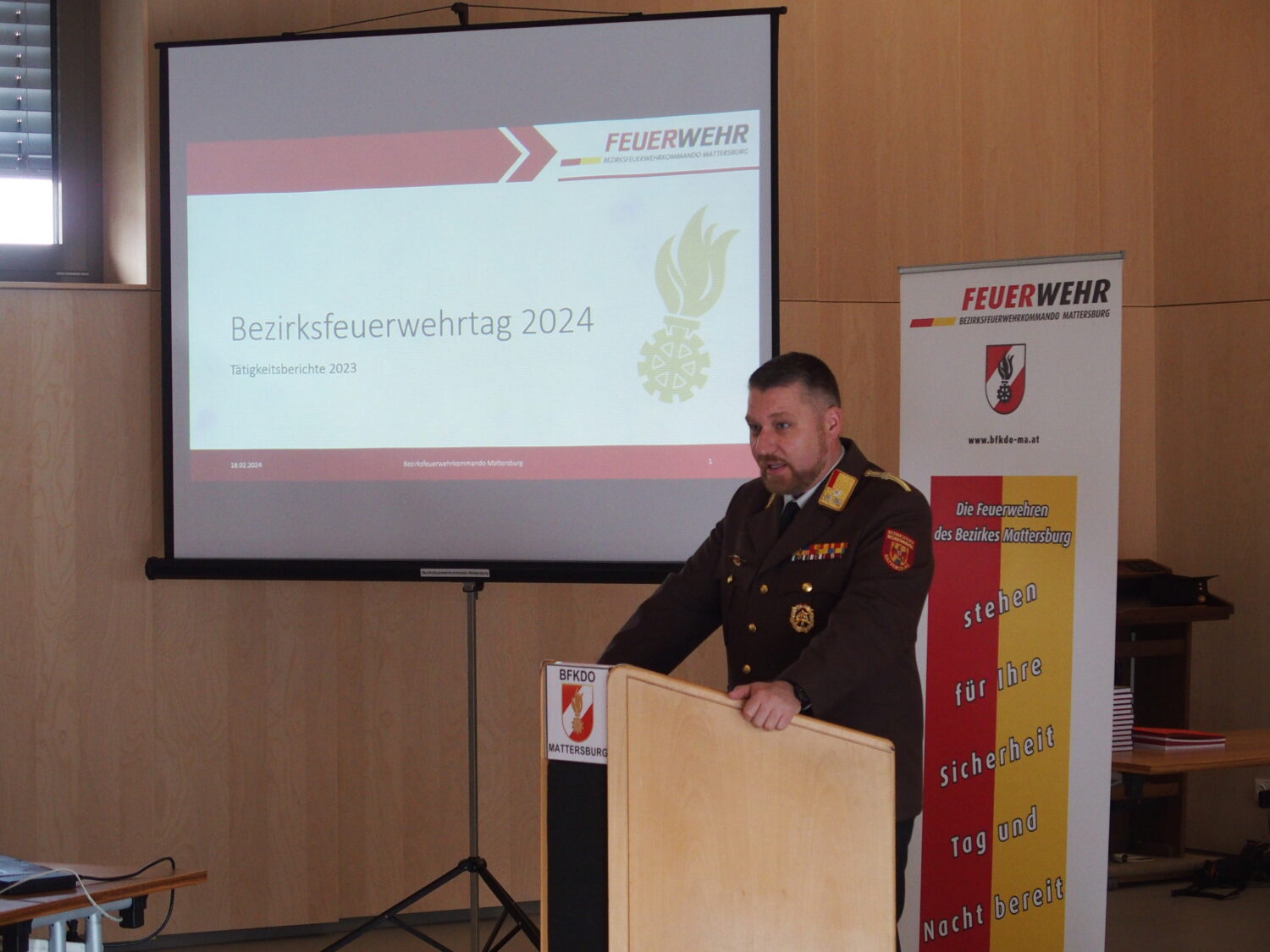 Nach den einleitenden Grußworten des Bezirkshauptmanns WHR Mag. Werner Zechmeister, erfolgte die Leistungsbilanz des vergangenen Jahres. Besonders hervorzuheben sind hierbei, neben der Einsatzstatistik, die zum Vorjahr gestiegenen absolvierten Lehrgänge an der Feuerwehrschule sowie die der Leistungsabzeichen. In Zahlen ausgedrückt, wurden im Jahr 2023 70 verschiedene Lehrgänge von 893 Teilnehmern besucht und rund 245 Leistungsabzeichen erfolgreich absolviert.