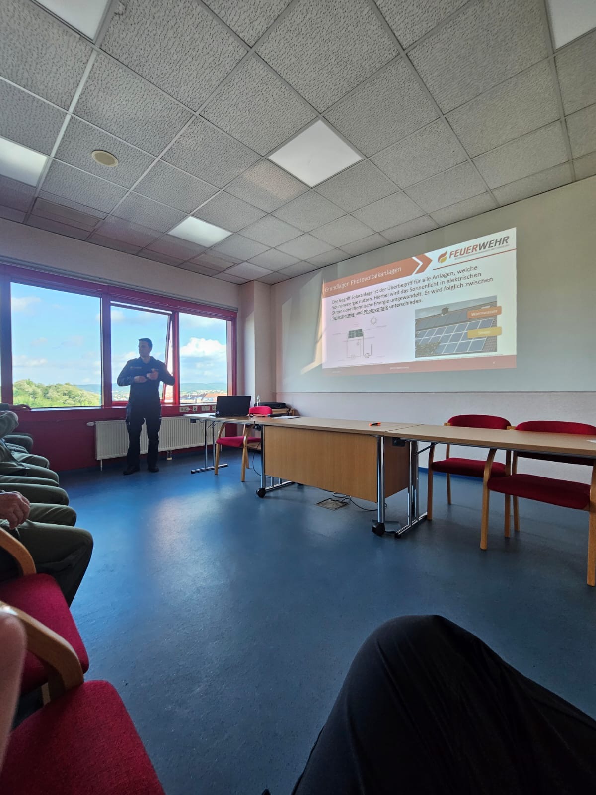 Im weiteren Verlauf wurden potenzielle Einsatzszenarien behandelt, die bei Einsätzen mit Photovoltaikanlagen auftreten können. Besonderes Augenmerk lag dabei auf den damit verbundenen Gefahren für Einsatzkräfte sowie auf geeigneten Schutzmaßnahmen zur Risikominimierung.