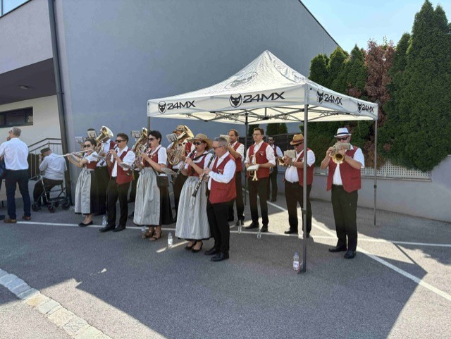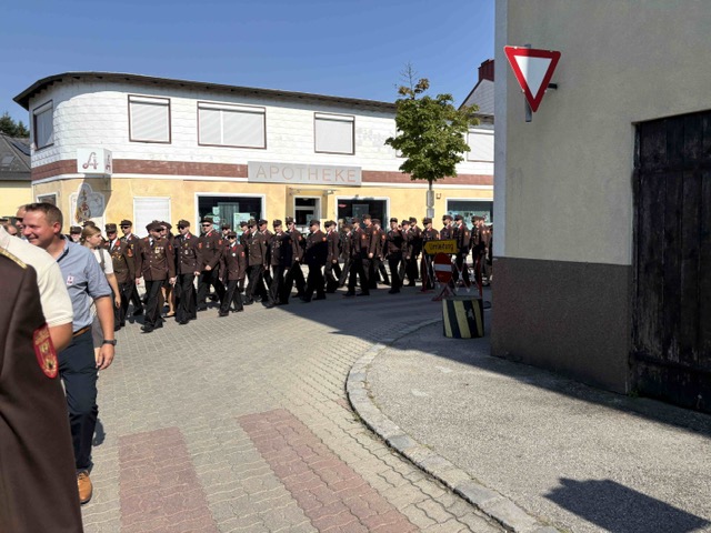 Mit dem Musikverein und unter Leitung des Abschnittsfeuerwehrkommandanten ABI Alex Frenzel, zog der Festzug durch die Ortschaft zur Fahrzeugpatin.
