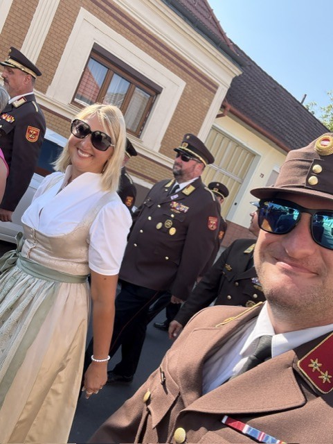 Die Fahrzeugpatin Frau Mag. Judith Polleres-Vogler, empfing den Festzug mit kühlen Getränken und kleinem Imbiss.