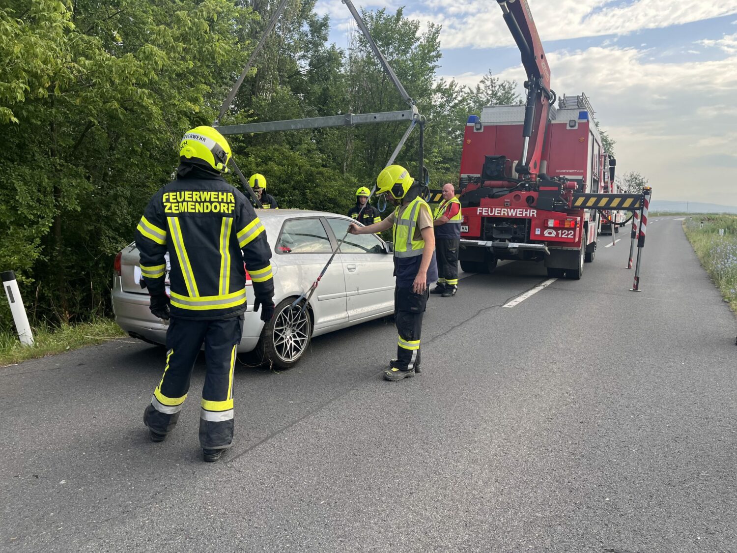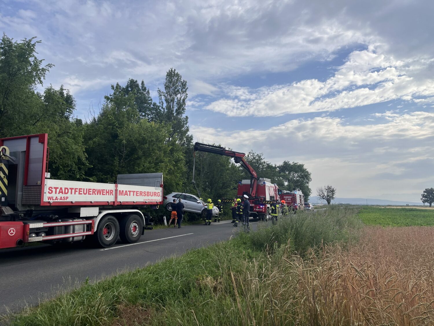 In den Morgenstunden des 27. Juni wurde die Feuerwehr Mattersburg zu einer Fahrzeugbergung nach Kleinfrauenhaid nachalarmiert.