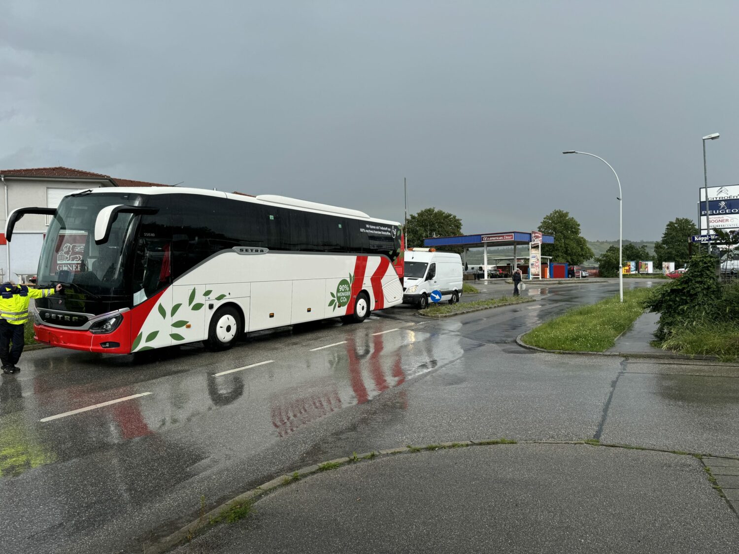 In der Bahnstraße blockierte ein liegengebliebener Reisebus den Verkehr woraufhin die Polizei die Feuerwehr anforderte. Mittels Abschleppstange wurde der Bus zur nächsten Parkmöglichkeit geschleppt und die Straße wieder frei gemacht.