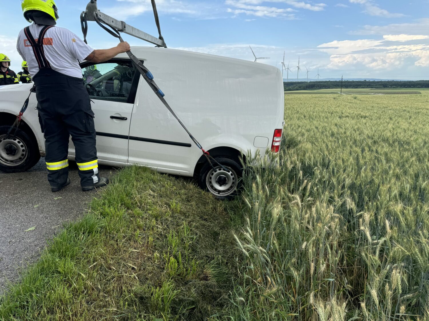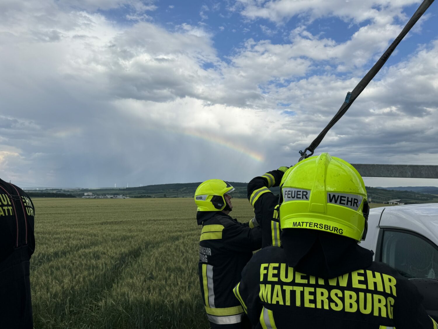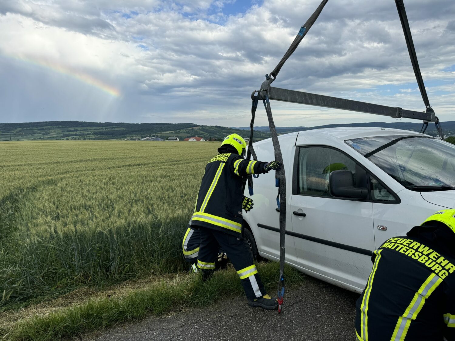 Noch während der Einsatzmaßnahmen bei der Busbergung wurden wir über eine Fahrzeugbergung informiert. Auch hier konnte mit dem Kran des schweren Rüstfahrzeuges rasch geholfen werden und nach einer Stunde Gesamteinsatzzeit wieder eingerückt werden.