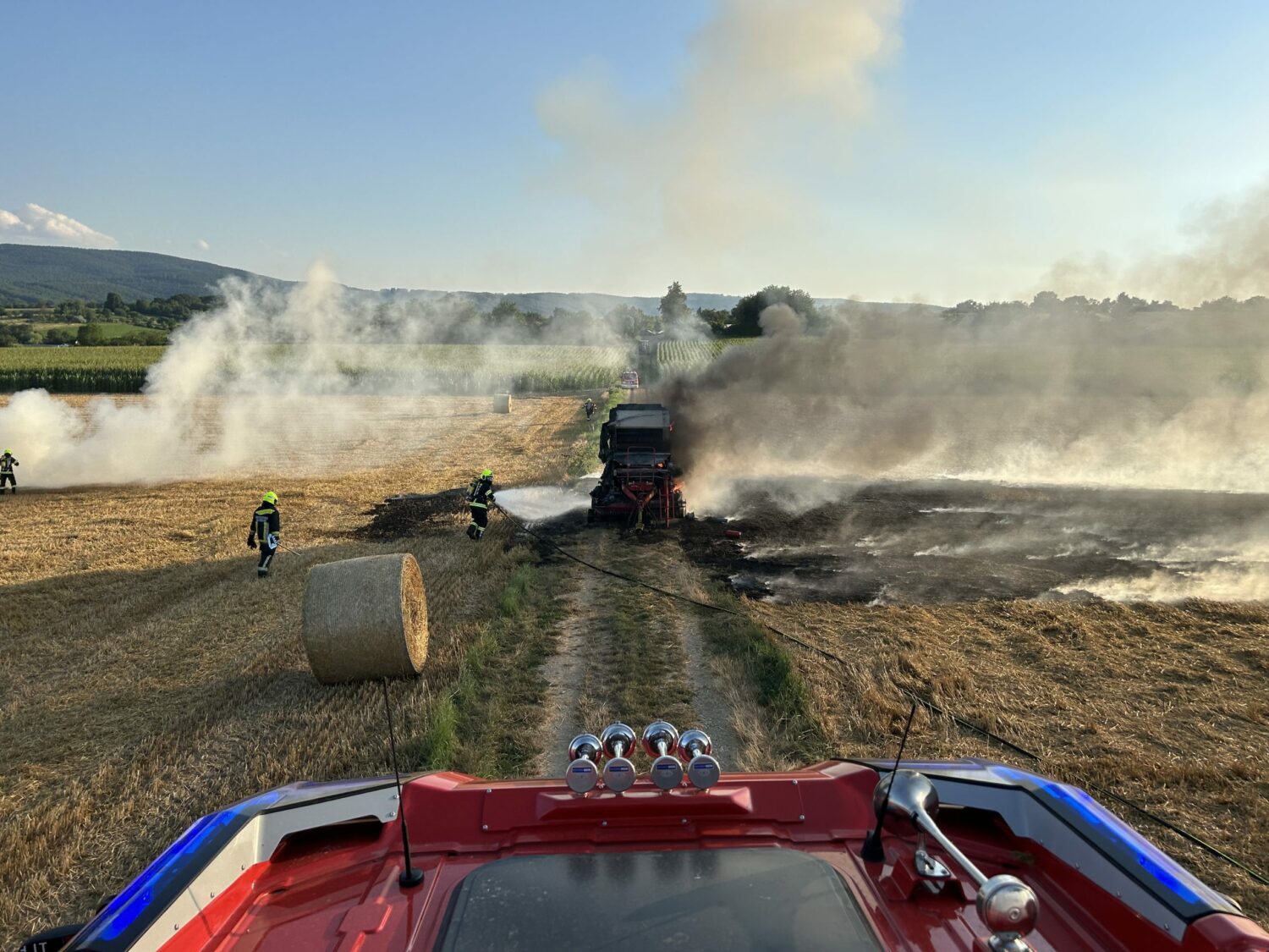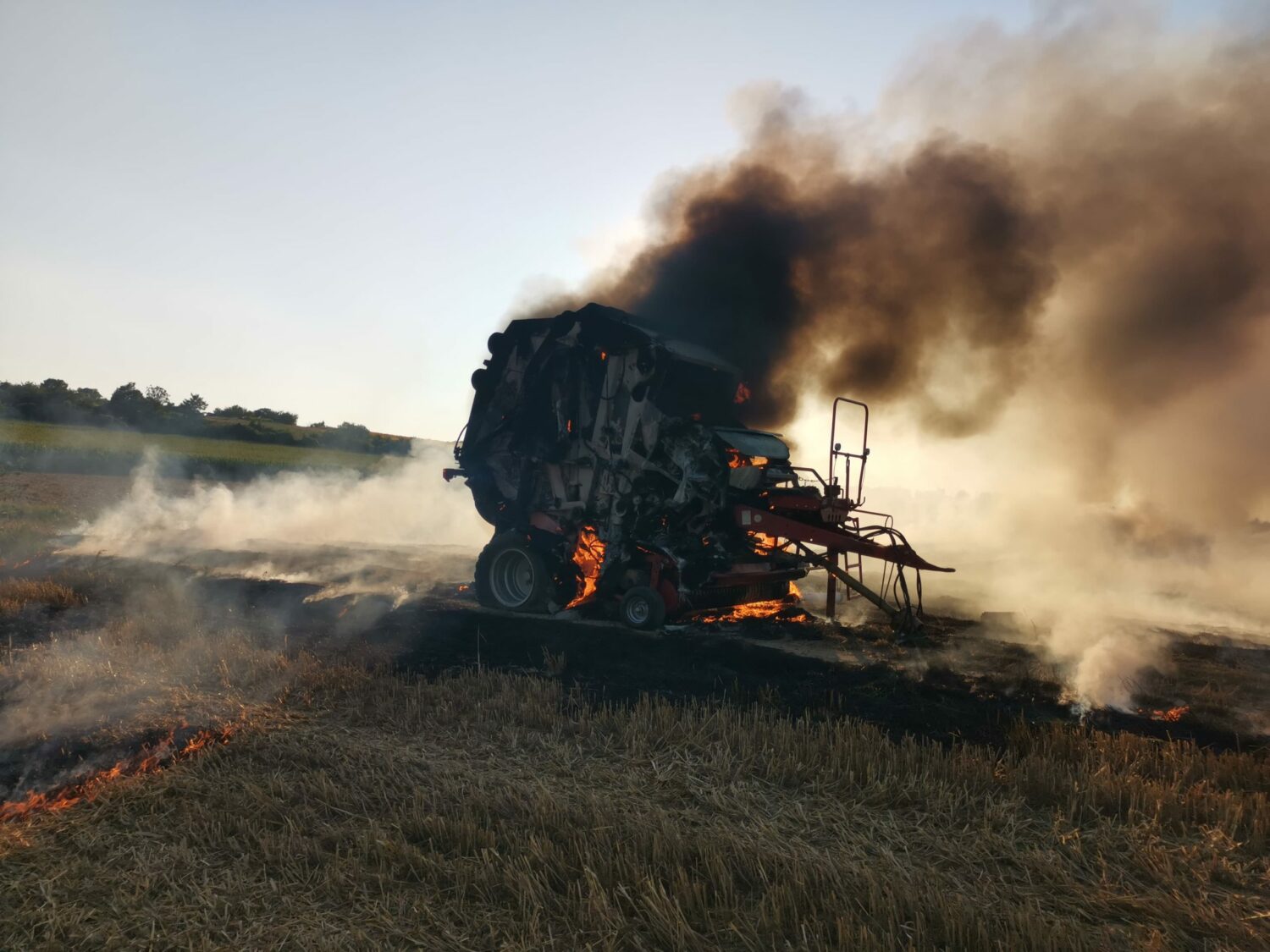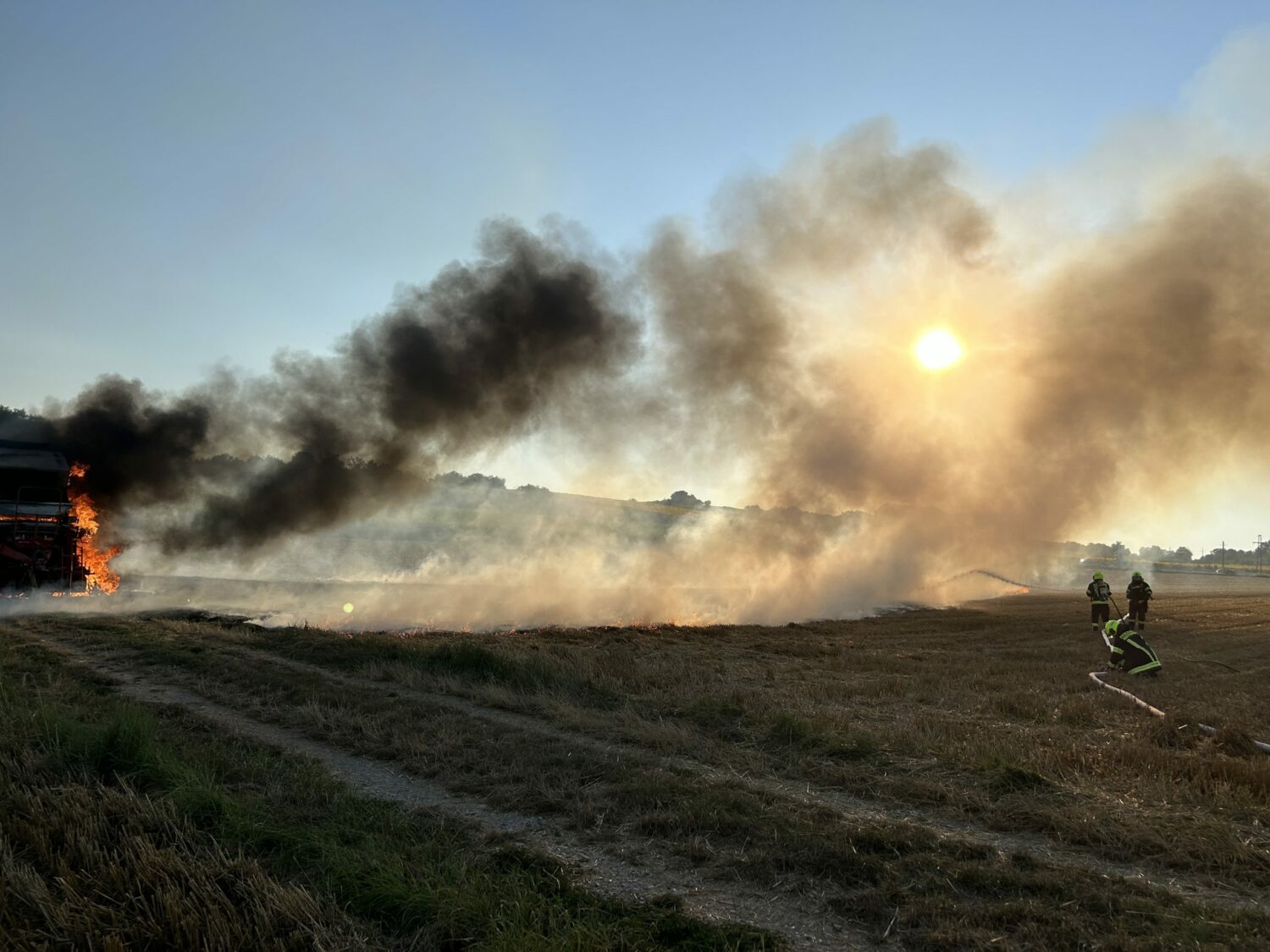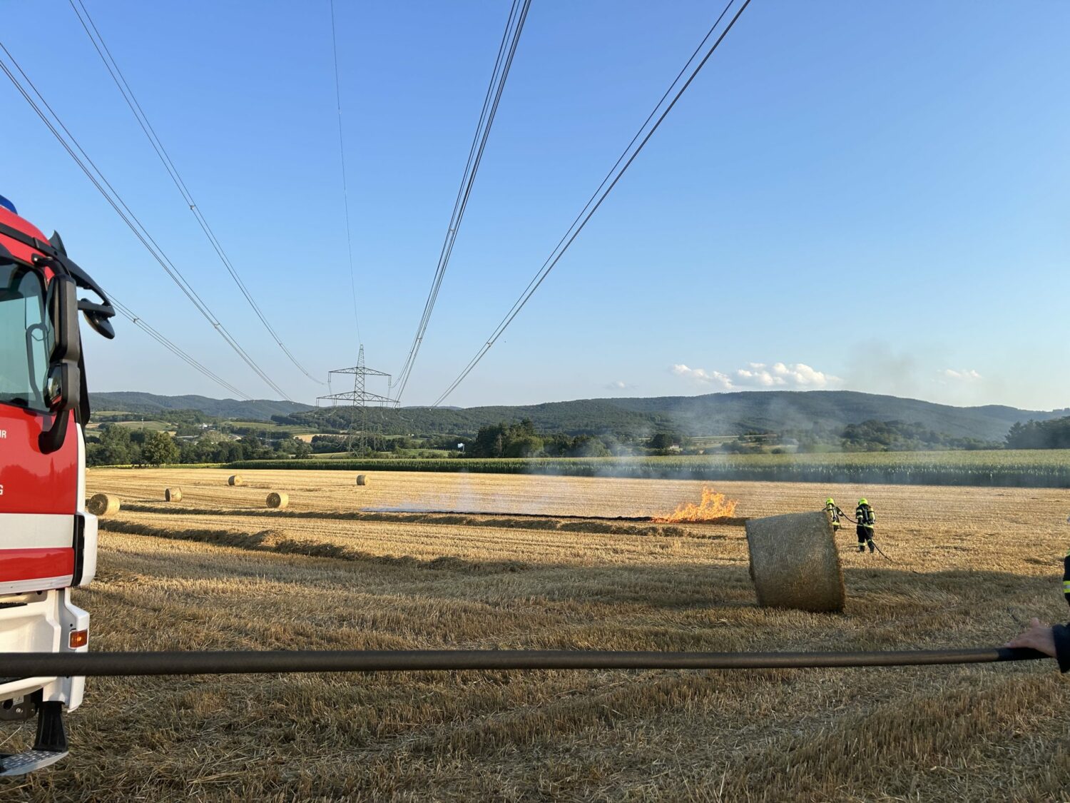 Gegen 19:00 Uhr wurden die Feuerwehren Mattersburg und Walbersdorf mittels Sirene und Rufempfänger zu einem Strohpressenbrand in der Nähe der S31 gerufen. Bereits auf der Anfahrt waren dichte Rauchschwaden sichtbar. Beim Eintreffen stand die landwirtschaftliche Maschine in Vollbrand. Dieser breitete sich rasch auf die umliegende Ackerfläche aus. Durch die schnelle Reaktion des Lenkers, welcher die Ballenpresse abkoppelte, konnte ein Übergreifen auf die Zugmaschine verhindert werden. Nach dem Eintreffen der beiden Löschfahrzeuge wurde umgehend ein Löschangriff mit zwei C-, einer Hochdruck- sowie einer Schaumschnellangriffs-Leitung, teils unter schwerem Atemschutz durchgeführt. Parallel dazu wurden einzelne Glutnester durch den Einsatz von Löschrucksäcken und Bodenbearbeitungswerkzeugen bekämpft. Nach dem effektiven Erstangriff wurden noch Nachlöscharbeiten durchgeführt und durch den betroffenen Bauern die Brandstellen mittels Grubber bearbeitet.