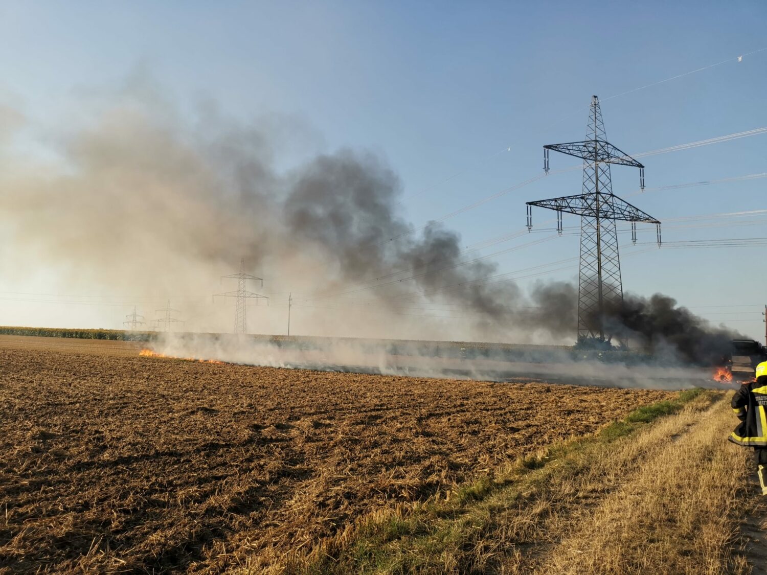 Noch während des Strohpressenbrandes kam es zu einer weiteren Alarmierung. Ein Feuerwehrjugendmitglied aus Gänserndorf entdeckte einen Flurbrand in der Nähe des Mattersburger Hauptbahnhofs und meldete diesen vorbildlich über den Feuerwehrnotruf der Landessicherheitszentrale. Da die Gefahr durch die Strohpresse weitgehend gebannt war, übernahm ein Teil der Kräfte beider Feuerwehren diesen Einsatz, welcher unter Einsatz eines HD-Rohres schnell bekämpft werden konnte.