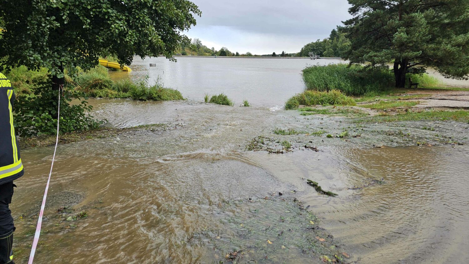 Am Sonntag in den frühen Nachmittagsstunden spitzte sich die Lage am Stausee in Forchtenstein und entlang der Leitha in Neudörfl zu. Am Stausee wurden Sicherungsmaßnahmen ergriffen, da der Wasserzulauf stark anstieg. Die Zufahrtsstraße zum Mobilheimplatz wurde unterspült und am Sonntagabend gesperrt. Zudem warnte der Landeskrisenstab am Sonntagnachmittag mittels AT-Alert die Anwohner der Gemeinden entlang der Leitha vor einer drohenden Hochwassergefahr.