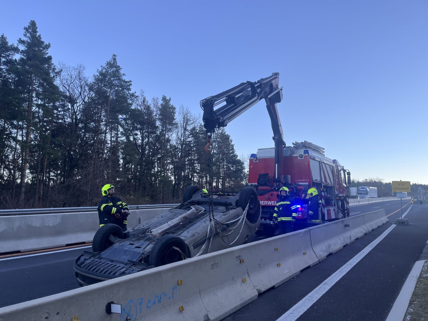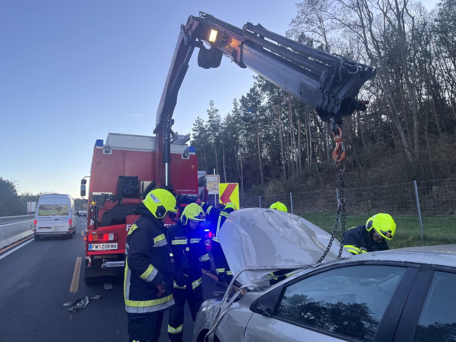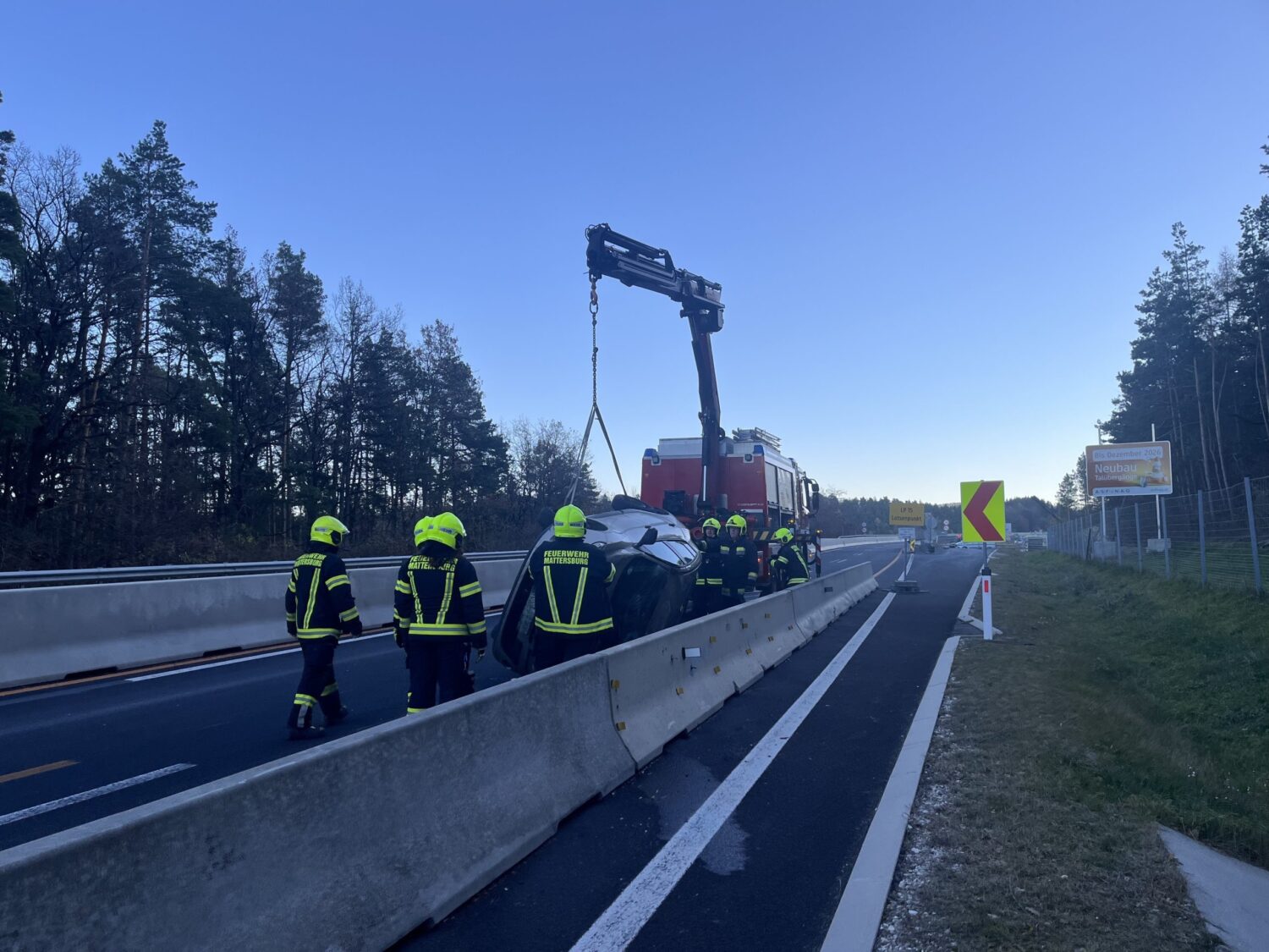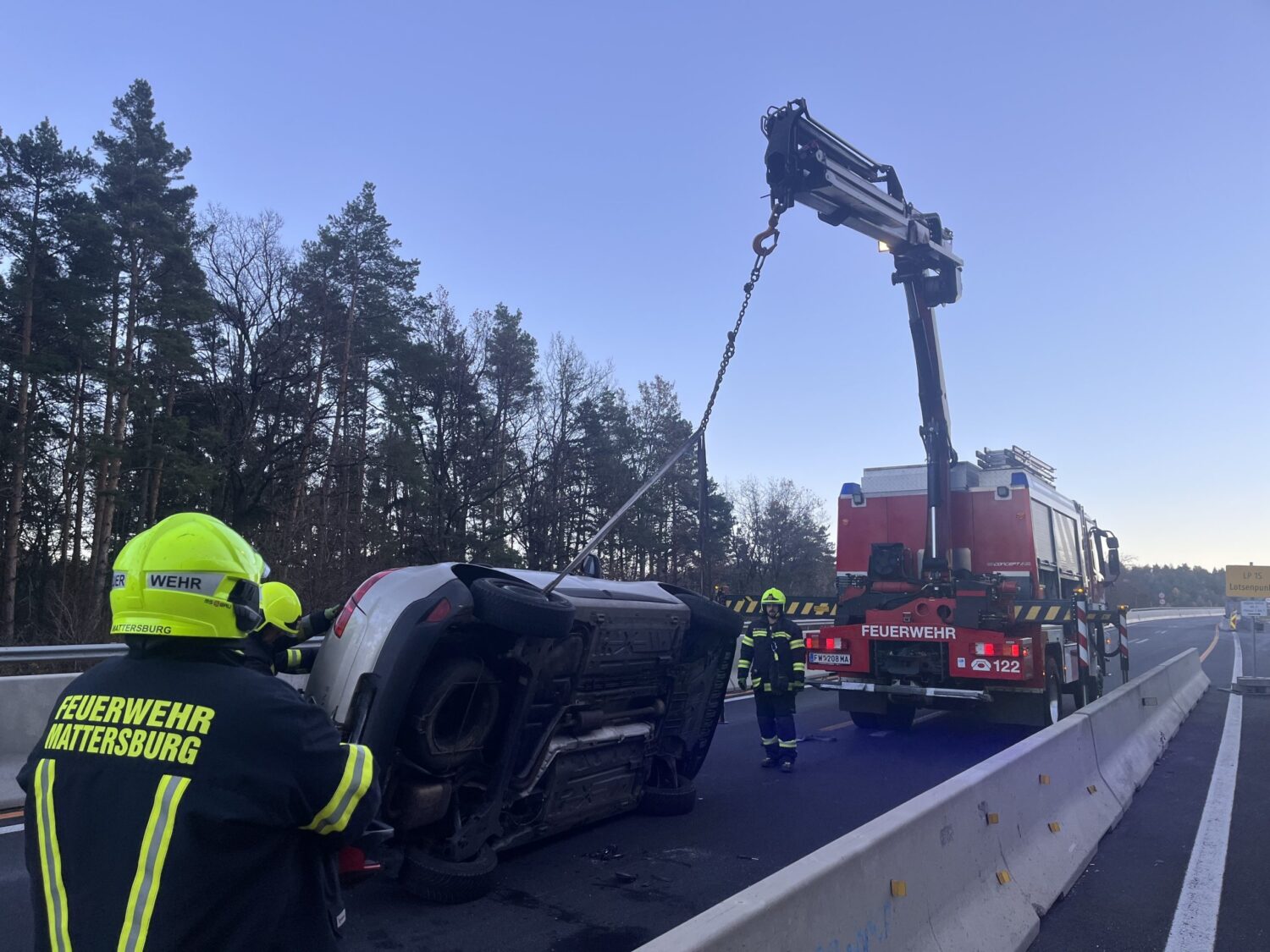 Im Baustellenbereich bei Sieggraben in Fahrtrichtung Oberpullendorf touchierte ein Fahrzeuglenker die Betonleitwand, überschlug sich daraufhin und kam am Dach liegend zum Stillstand. Wie durch ein Wunder blieb der Lenker dabei unverletzt. Mittels Kran wurde der PKW wieder auf die Räder gestellt und anschließend abtransportiert. Während der Bergungsarbeiten musste die Richtungsfahrbahn kurzzeitig gesperrt werden.