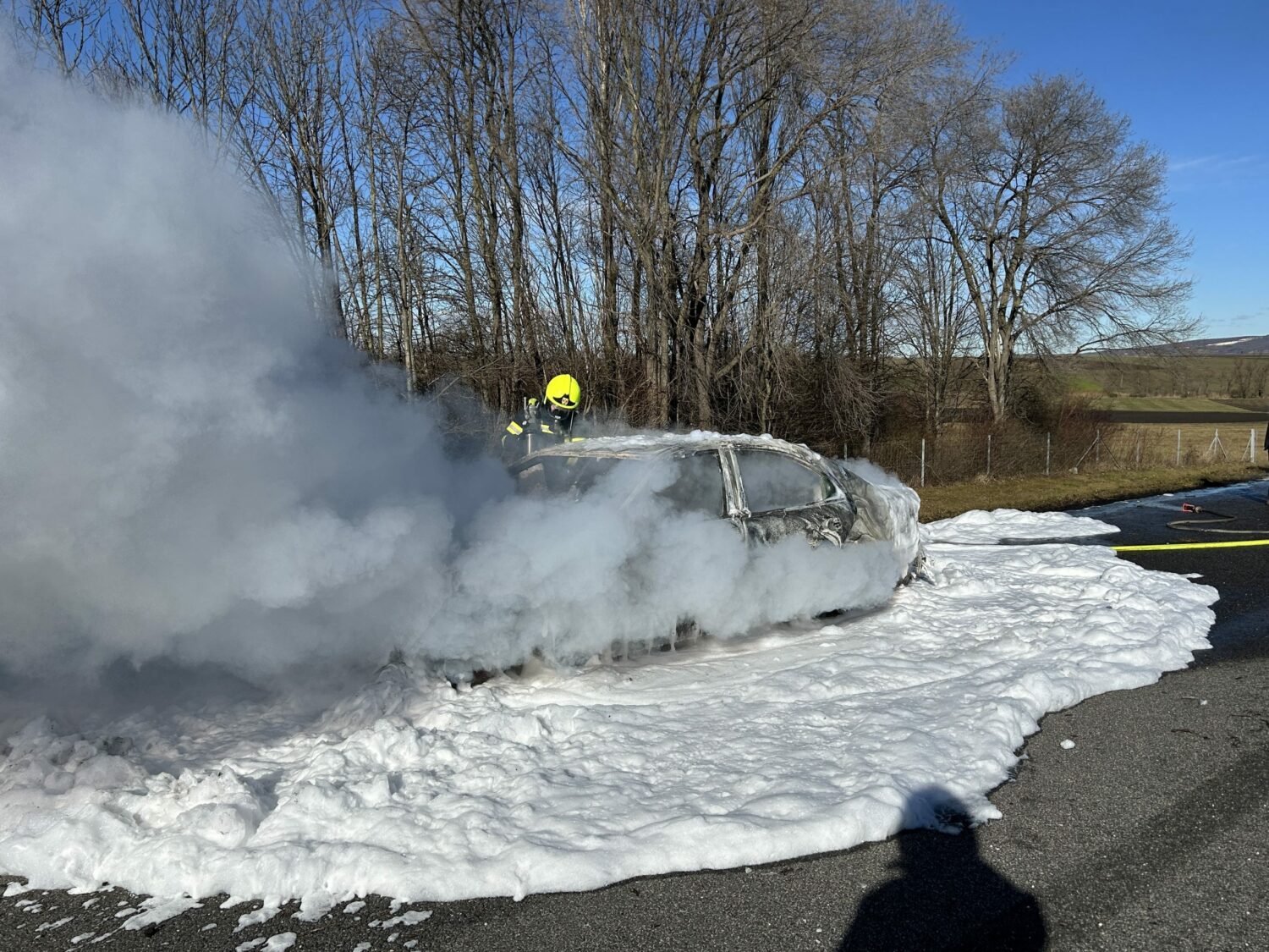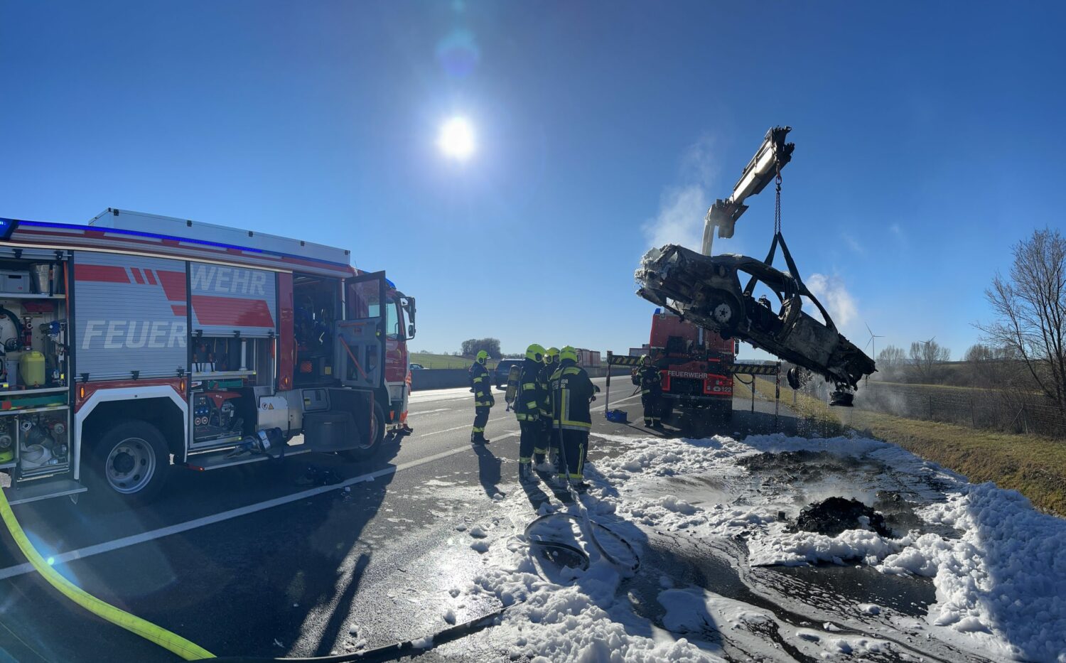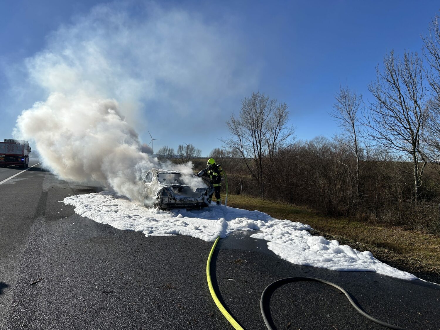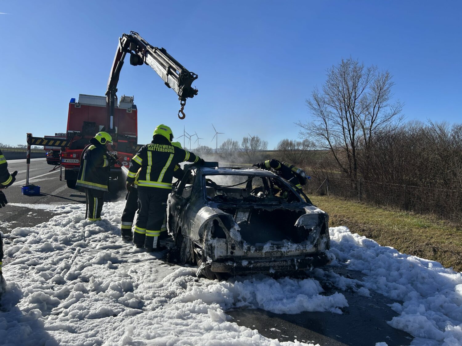 Die Feuerwehr Mattersburg wurde am 29.01.2025 zu einem Fahrzeugbrand auf die S31 alarmiert. Beim Eintreffen der Kräfte stand der PKW bereits in Vollbrand. Nach Brand aus wurde der PKW mit dem Kran auf das Wechselladerfahrzeug verladen und von der Unfallstelle verbracht.