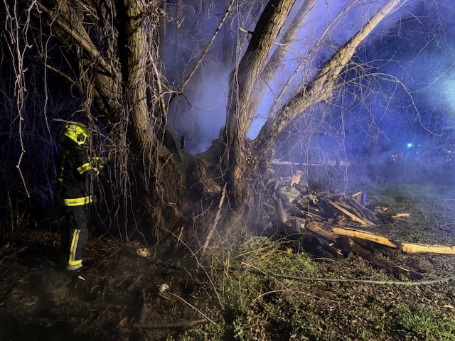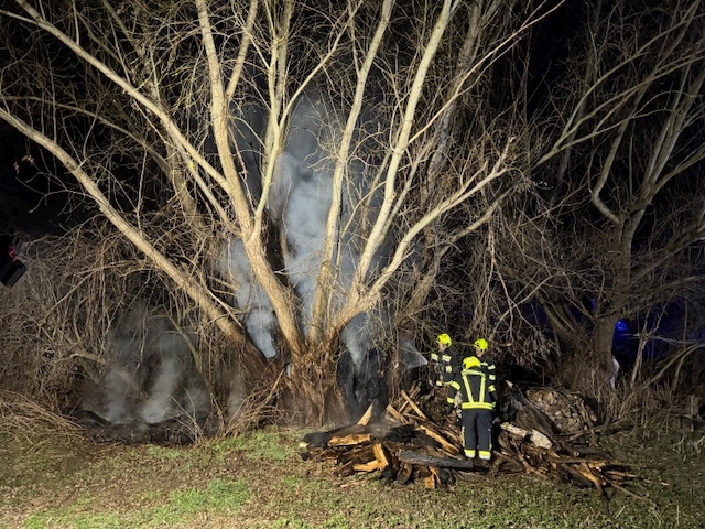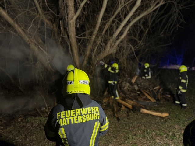 Drei Stunden später wurden die Mitglieder der Feuerwehr Mattersburg erneut zu einem Brandeinsatz alarmiert. Eine aufmerksame Autolenkerin meldete einen Feuerschein im Bereich der Hundefreilaufzone. Vor Ort wurde ein Brand im Bereich eines Holzstoßes, welcher bereits auf einen Baum übergegriffen hatte, vorgefunden. Mittels HD-Rohr konnte der Brand rasch eingedämmt und in weiterer Folge gelöscht werden.