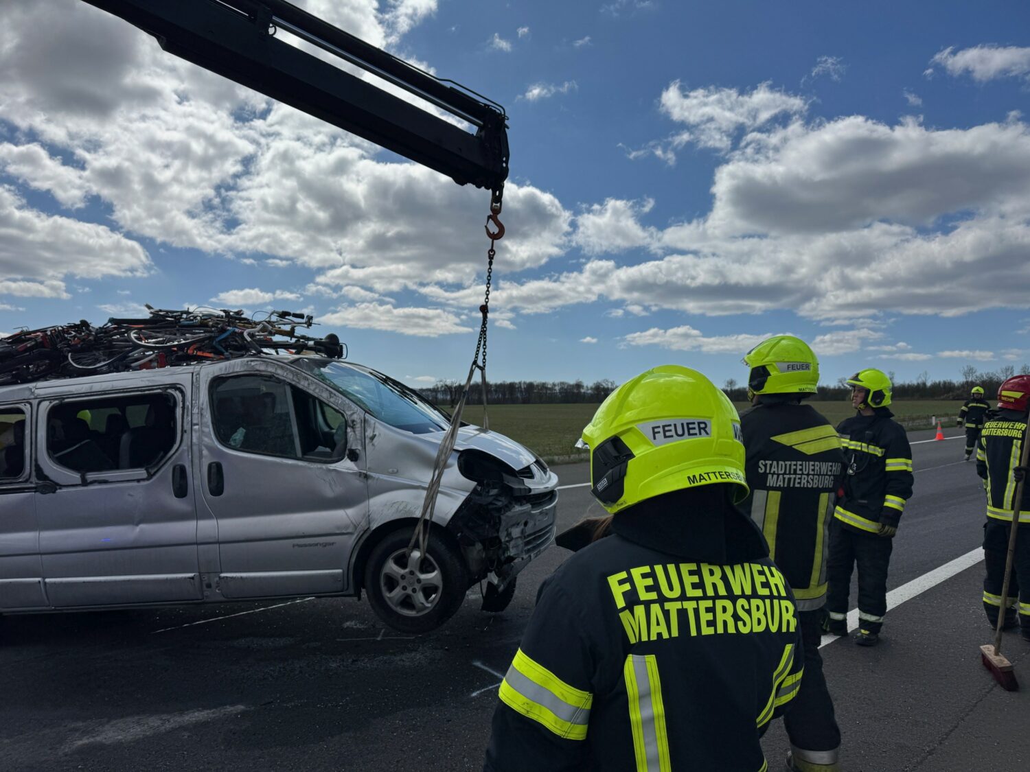 Nach der Unfallaufnahme durch die Autobahnpolizei übernahm die Feuerwehr Mattersburg die Bergung des Kleinbusses samt Anhänger sowie die Reinigung der Fahrbahn. Während der Bergungsarbeiten war im betroffenen Autobahnabschnitt nur der Pannenstreifen für den Verkehr freigegeben.