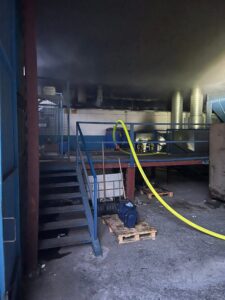 Die stark verrauchten Hallen wurden mithilfe mehrerer Hochleistungslüfter entraucht. Im Anschluss erfolgten wiederholte Kontrollen der betroffenen Bereiche mittels Wärmebildkamera, um verbliebene Glutnester auszuschließen. Die unterstützenden Kräfte konnten daraufhin sukzessive aus dem Einsatz abrücken.