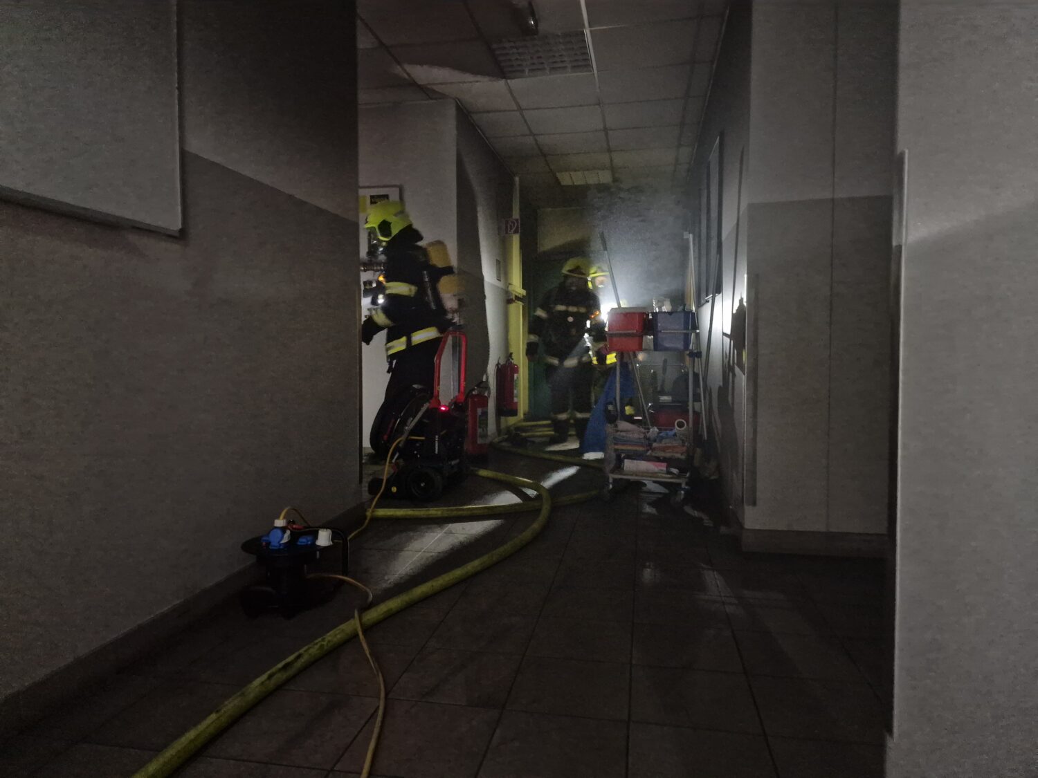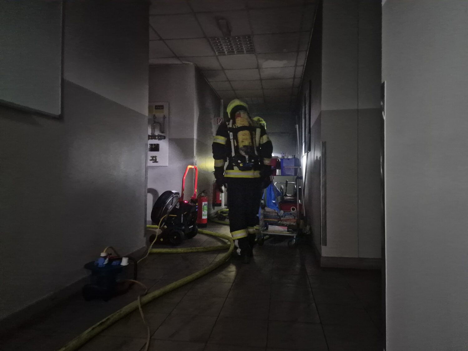 Beim Eintreffen drang bereits dichter Rauch aus dem betroffenen Gebäudeteil. Unverzüglich wurde unter schwerem Atemschutz die Brandbekämpfung im betroffenen Bereich aufgenommen. Der Brand in einem Heizraum konnte rasch lokalisiert und in weiterer Folge abgelöscht werden. Anschließend wurden umfangreiche Belüftungsmaßnahmen mit insgesamt drei Druckbelüftern durchgeführt, um die Räumlichkeiten rauchfrei zu machen. Das Rote Kreuz war vorsorglich mit einem Rettungswagen und mehreren First Respondern ebenfalls im Einsatz.