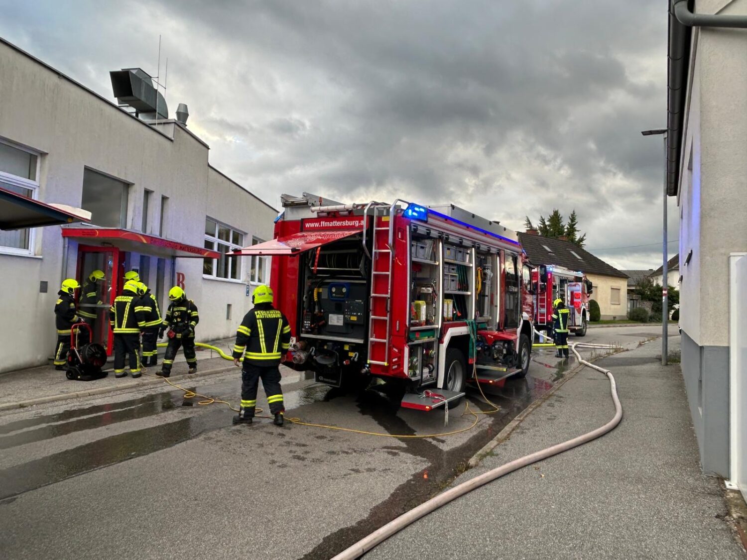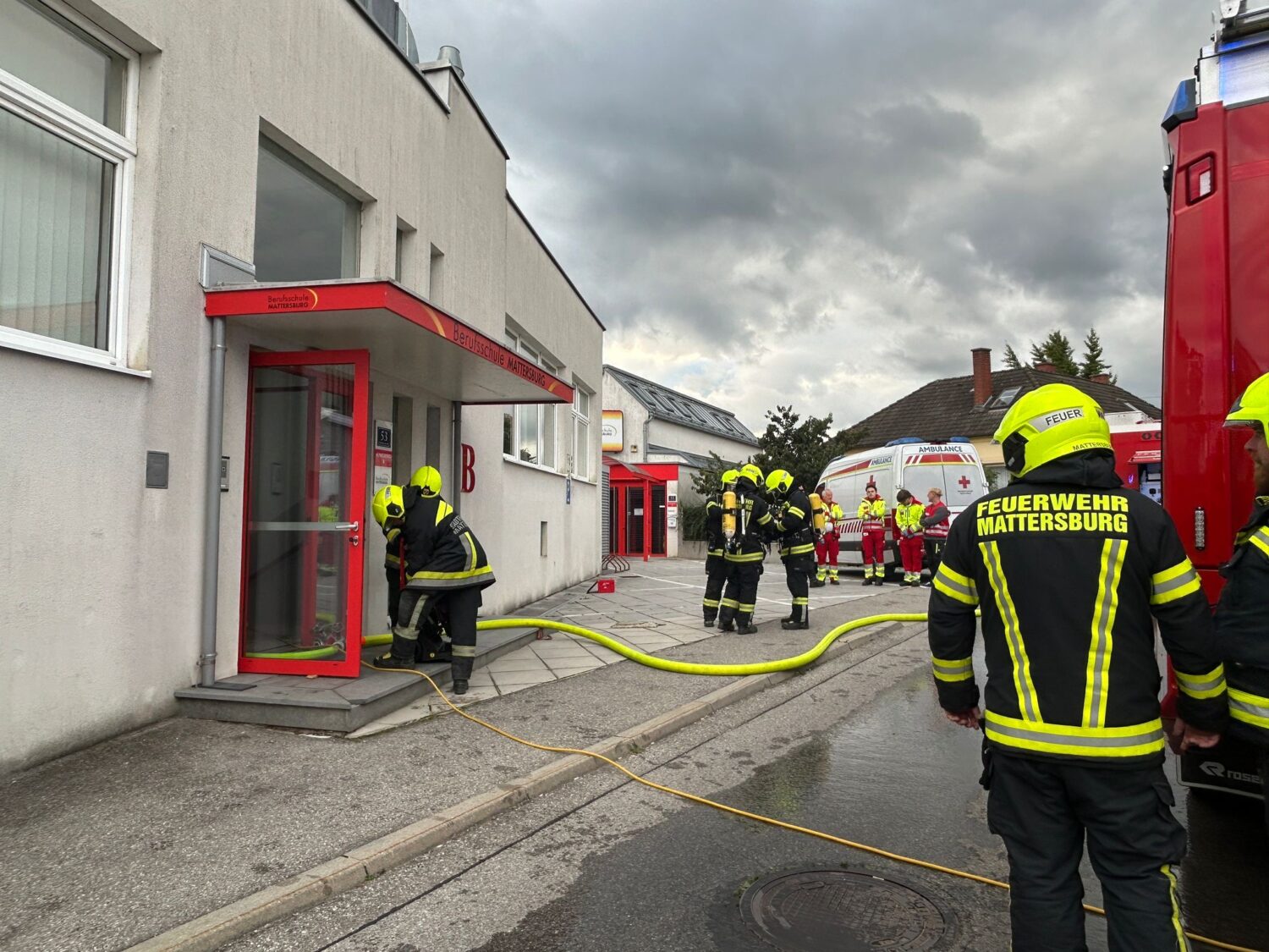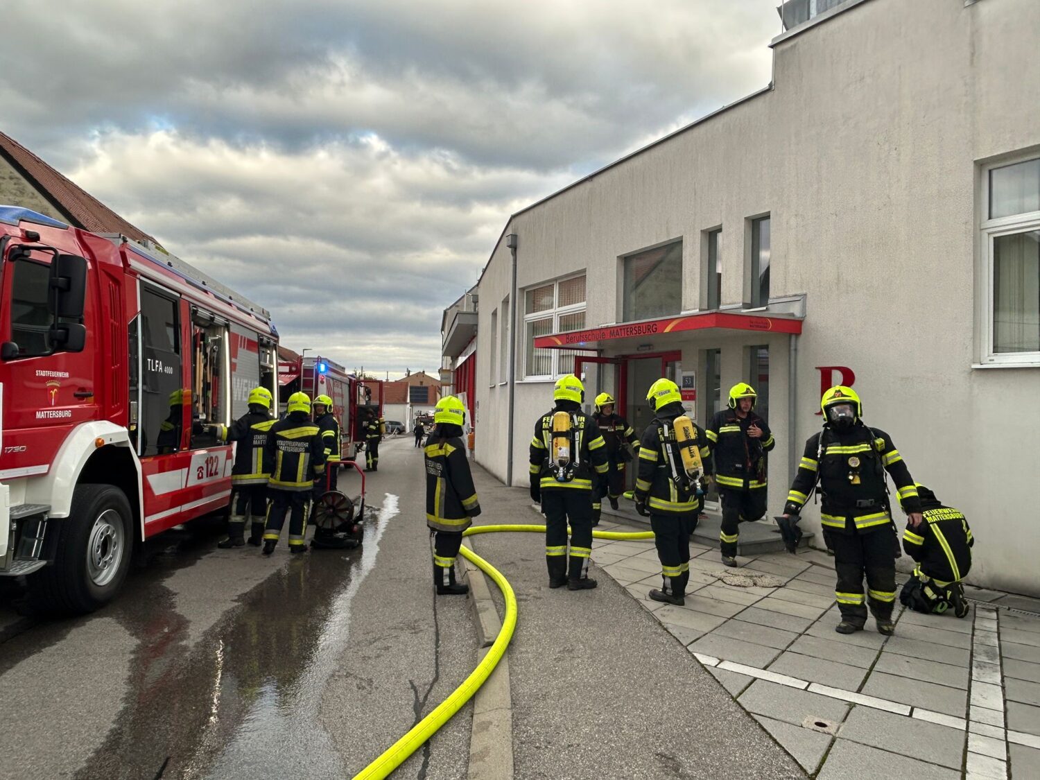 Am 7.10.2025 wurde die Feuerwehr Mattersburg zu einem Brand in einem Schulgebäude im Stadtgebiet alarmiert.