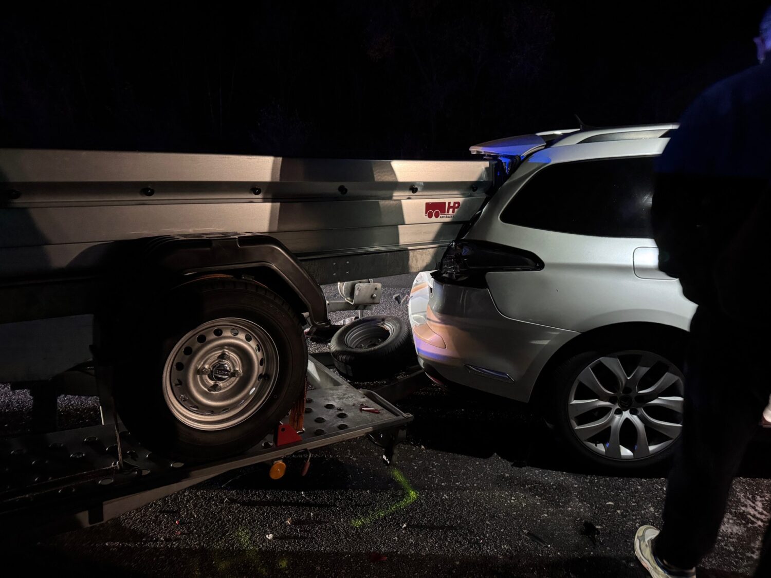 In den zweiten Unfall waren insgesamt fünf Fahrzeuge sowie ein Anhänger involviert. Mindestens eine Person wurde verletzt und durch den Rettungsdienst versorgt und in ein Krankenhaus gebracht. Seitens der Feuerwehr wurde die Unfallstelle gemeinsam mit der Autobahnpolizei abgesichert und die Unfallstelle ausgeleuchtet. Die Bergungsarbeiten wurden nach Abschluss der Unfallaufnahme durchgeführt. Zwei PKW sowie ein Anhänger mussten von der Feuerwehr abtransportiert werden. Drei weitere Fahrzeuge konnten die Fahrt in Begleitung von Autobahnpolizei und Feuerwehr bis zur nächsten Ausfahrt fortsetzen. Im Anschluss wurde die Fahrbahn gereinigt und ausgelaufene Betriebsmittel gebunden.